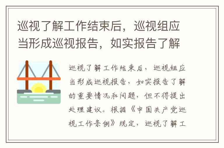 巡视了解工作结束后,巡视组应当形成巡视报告,如实报告了解的重要情况和问题,但不得提出处理建议。