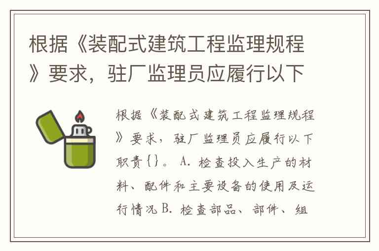 组织出厂验收(B选项):根据文档1,驻厂监理员职责为“参与”首件验收,而非“组织”出厂验收,此项通常由监理组长或总监负责。
