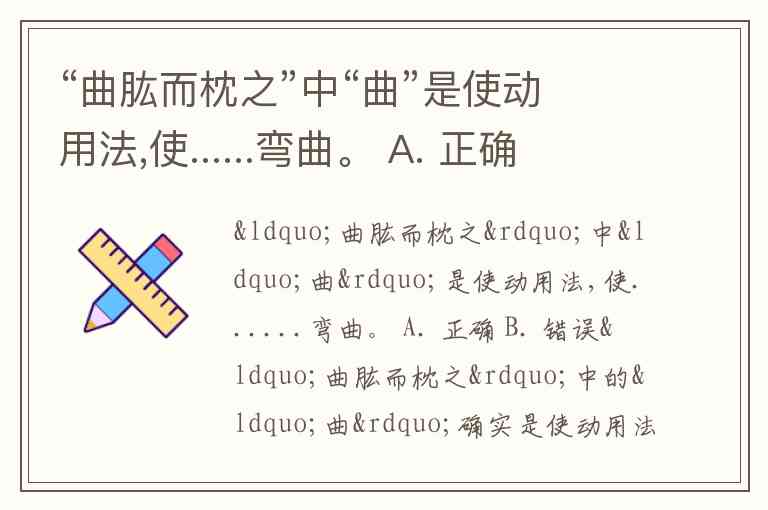 “曲肱而枕之”中“曲”是使动用法,使......弯曲。 A. 正确 B. 错误