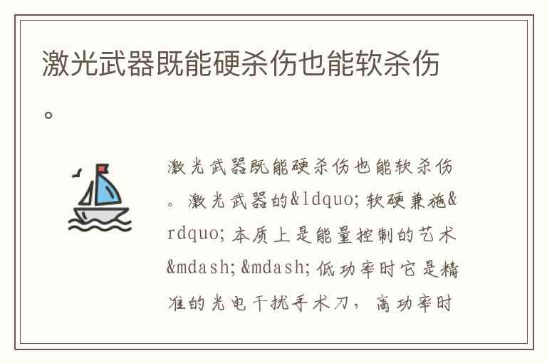 激光武器的“软硬兼施”本质上是能量控制的艺术——低功率时它是精准的光电干扰手术刀,高功率时则化身为熔化金属的能量洪流。这种双重特性使其在现代战场上既能瘫痪敌方传感器,又能直接摧毁目标结构,成为各国军事研发的核心方向。