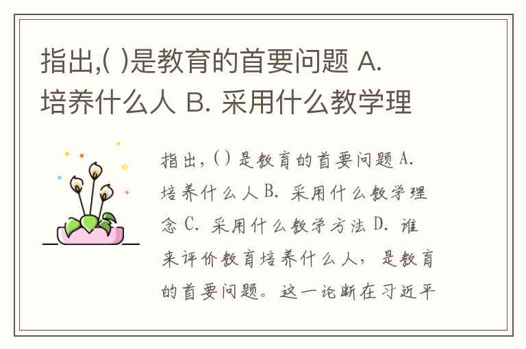 指出,( )是教育的首要问题 A. 培养什么人 B. 采用什么教学理念 C. 采用什么教学方法 D. 谁来评价教育