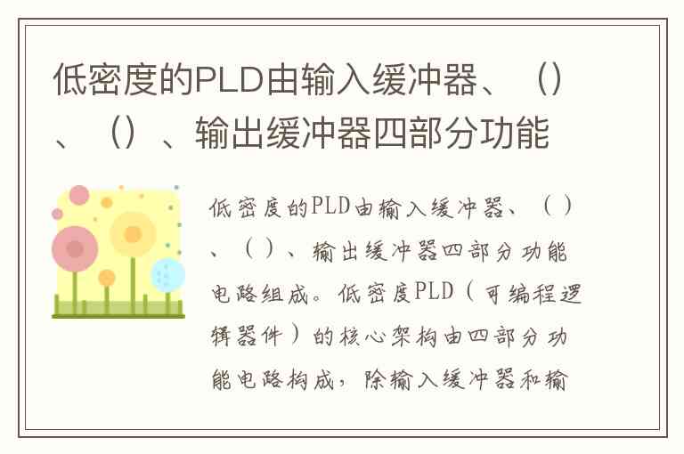 低密度PLD(可编程逻辑器件)的核心架构由四部分功能电路构成,除输入缓冲器和输出缓冲器外,中间两部分为可编程与阵列和可编程或阵列。这种"与-或"阵列结构是实现逻辑功能的基础,通过对与阵列和或阵列的编程配置,可以组合出各种复杂的布尔逻辑表达式。