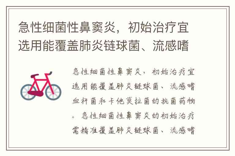 急性细菌性鼻窦炎,初始治疗宜选用能覆盖肺炎链球菌、流感嗜血杆菌和卡他莫拉菌的抗菌药物。