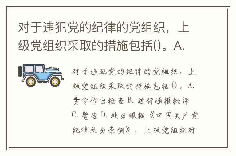 对于违犯党的纪律的党组织,上级党组织采取的措施包括()。A.责令作出检查 B.进行通报批评 C.警告 D.处分