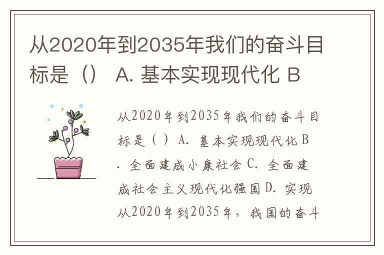 从2020年到2035年我们的奋斗目标是() A. 基本实现现代化 B. 全面建成小康社会 C. 全面建成社会主义现代化强国 D. 实现