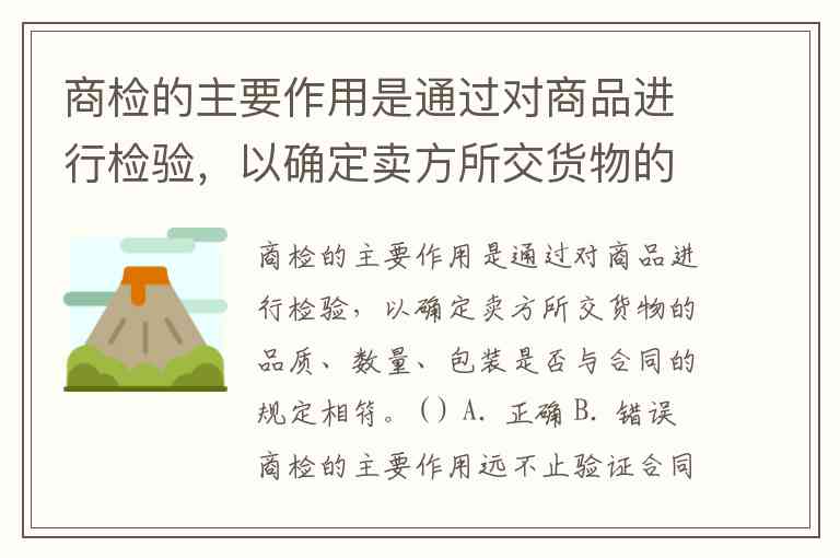 商检的主要作用是通过对商品进行检验,以确定卖方所交货物的品质、数量、包装是否与合同的规定相符。( ) A. 正确 B. 错误