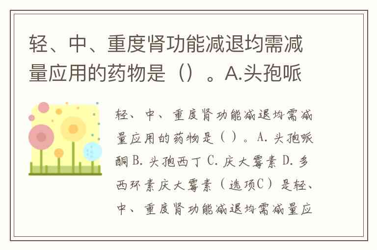 轻、中、重度肾功能减退均需减量应用的药物是()。A.头孢哌酮 B.头孢西丁 C.庆大霉素 D.多西环素