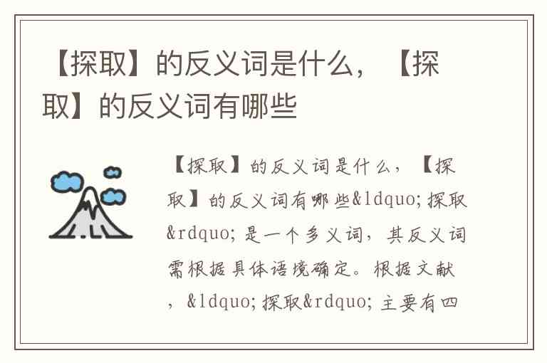 “探取”是一个多义词,其反义词需根据具体语境确定。根据文献,“探取”主要有四个含义:试探、预支、摸取、探问。