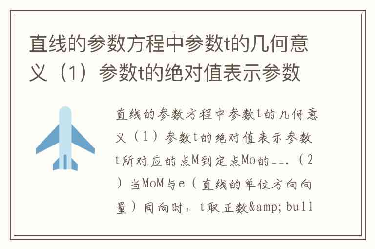 这种几何意义建立在直线参数方程的标准形式之上,即过定点 且倾斜角为 的直线参数方程 ( 为参数)。此时, 的绝对值直接对应两点间的距离,而 的正负则体现方向:当向量 与单位方向向量 同向时 为正,反向时 为负,重合时 。