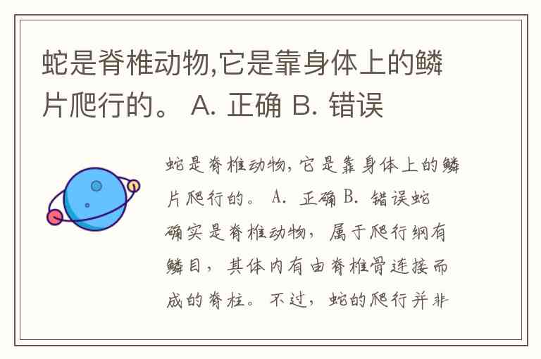 蛇是脊椎动物,它是靠身体上的鳞片爬行的。 A. 正确 B. 错误