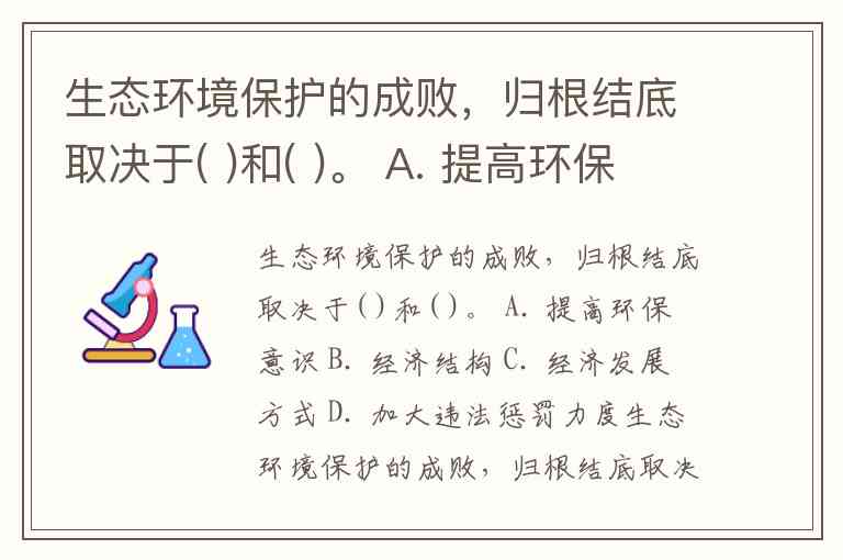 生态环境保护的成败,归根结底取决于( )和( )。 A. 提高环保意识 B. 经济结构 C. 经济发展方式 D. 加大违法惩罚力度