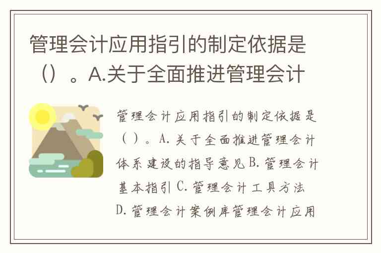管理会计应用指引的制定依据是()。A.关于全面推进管理会计体系建设的指导意见 B.管理会计基本指引 C.管理会计工具方法 D.管理会计案例库
