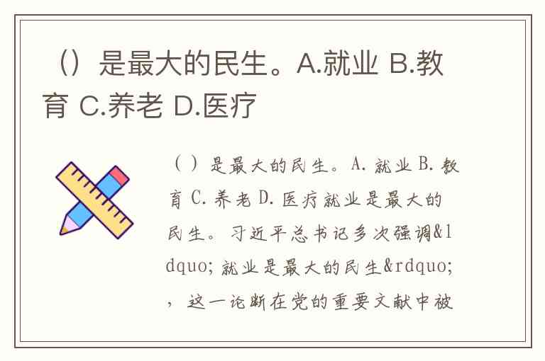 ()是最大的民生。A.就业 B.教育 C.养老 D.医疗