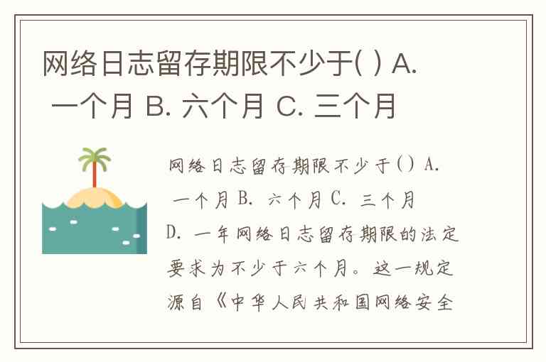 网络日志留存期限不少于( ) A. 一个月 B. 六个月 C. 三个月 D. 一年