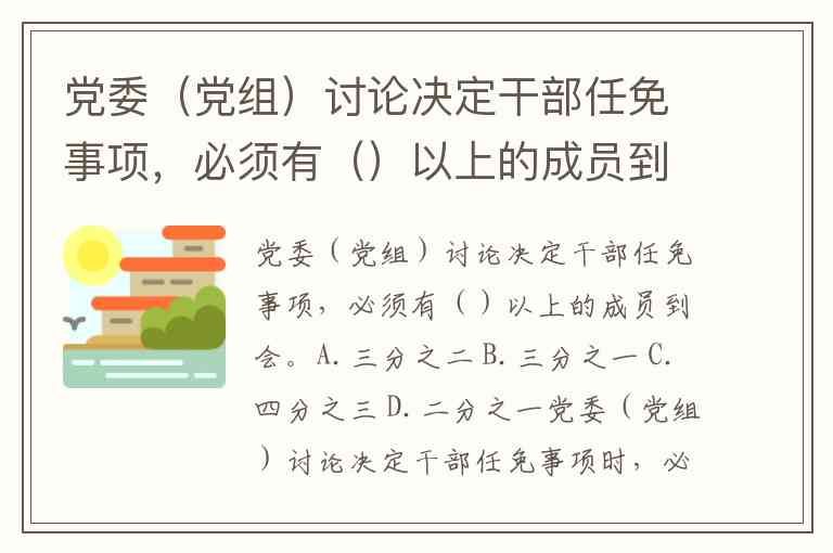 党委(党组)讨论决定干部任免事项,必须有()以上的成员到会。A.三分之二 B.三分之一 C.四分之三 D.二分之一