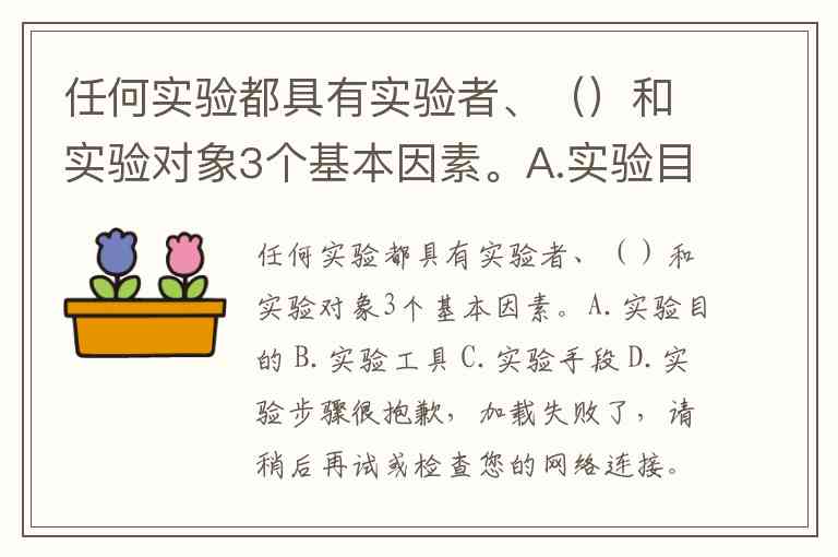 任何实验都具有实验者、()和实验对象3个基本因素。A.实验目的 B.实验工具 C.实验手段 D.实验步骤