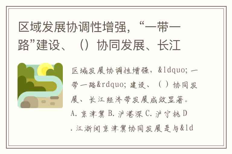 区域发展协调性增强,“一带一路”建设、()协同发展、长江经济带发展成效显著。A.京津冀 B.沪港深 C.沪宁杭 D.江浙闵