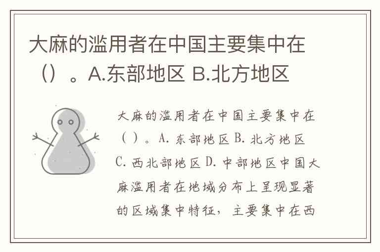 大麻的滥用者在中国主要集中在()。A.东部地区 B.北方地区 C.西北部地区 D.中部地区