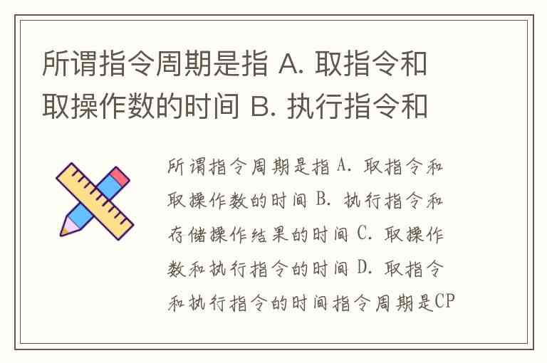 所谓指令周期是指 A. 取指令和取操作数的时间 B. 执行指令和存储操作结果的时间 C. 取操作数和执行指令的时间 D. 取指令和执行指令的时间