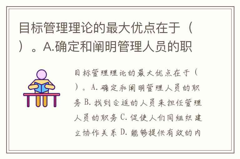 目标管理理论的最大优点在于()。A.确定和阐明管理人员的职务 B.找到合适的人员来担任管理人员的职务 C.促使人们同组织建立协作关系 D.能够提供有效的内心激励