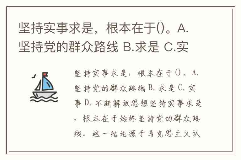 坚持实事求是,根本在于()。A.坚持党的群众路线 B.求是 C.实事 D.不断解放思想