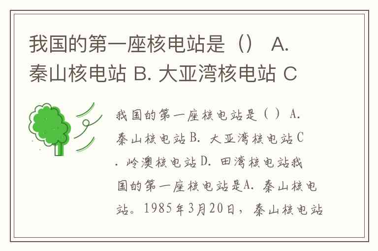 我国的第一座核电站是() A. 秦山核电站 B. 大亚湾核电站 C. 岭澳核电站 D. 田湾核电站