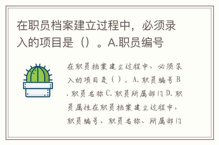 在职员档案建立过程中,职员编号、职员名称、所属部门均为必须录入的项目,而职员属性通常属于可选项。这一结论既符合人力资源管理的实操规范,也与信息化系统的设计逻辑一致。