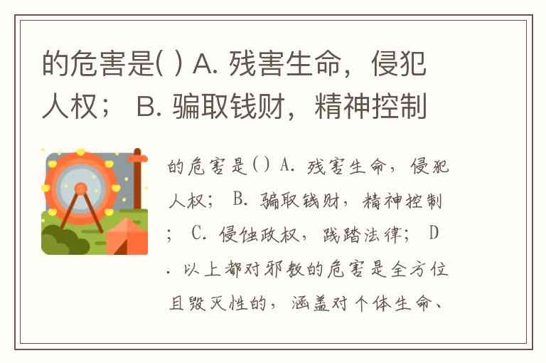 的危害是( ) A. 残害生命,侵犯人权; B. 骗取钱财,精神控制; C. 侵蚀政权,践踏法律; D. 以上都对