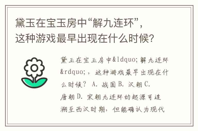 黛玉在宝玉房中“解九连环”,这种游戏最早出现在什么时候? A. 战国 B. 汉朝 C. 唐朝 D. 宋朝