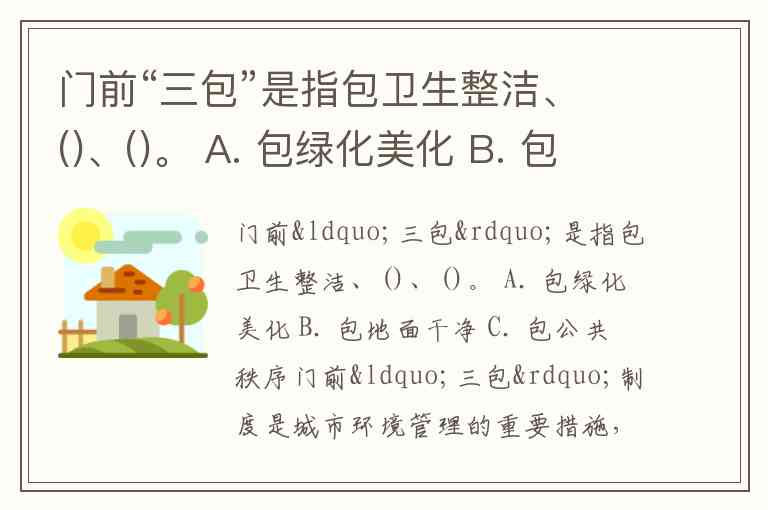 门前“三包”是指包卫生整洁、()、()。 A. 包绿化美化 B. 包地面干净 C. 包公共秩序
