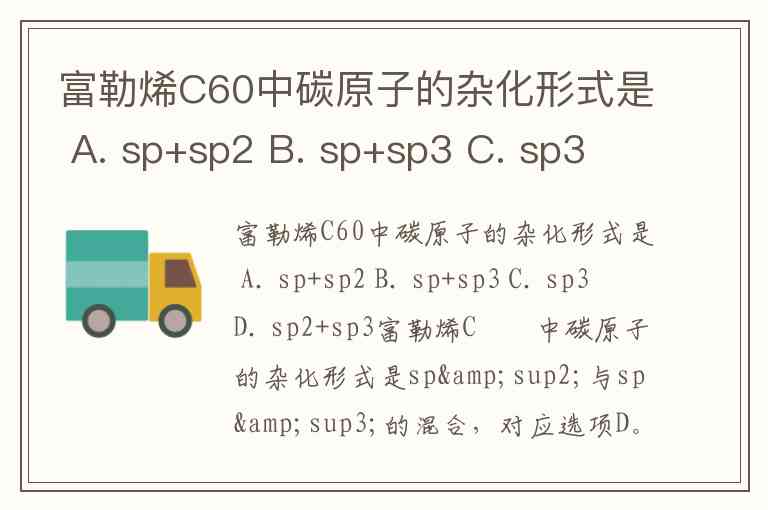 富勒烯C60中碳原子的杂化形式是 A. sp+sp2 B. sp+sp3 C. sp3 D. sp2+sp3