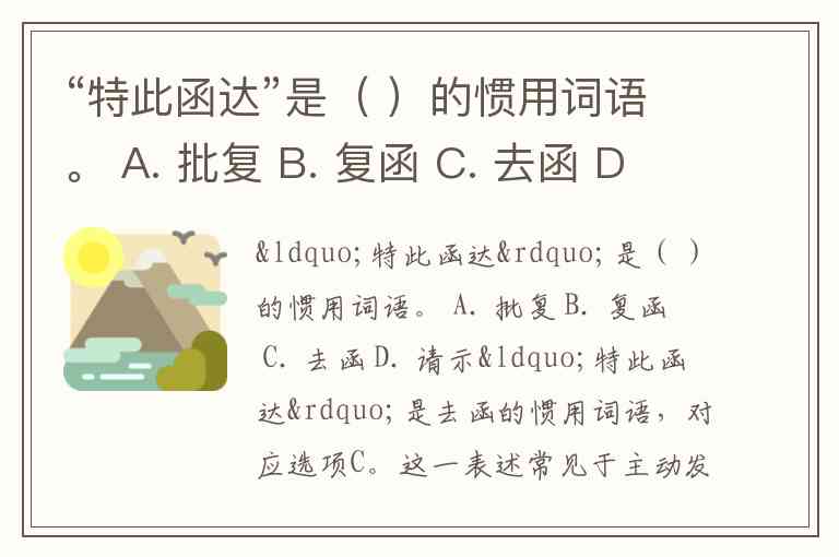 “特此函达”是去函的惯用词语,对应选项C。这一表述常见于主动发起沟通的函件结尾,强调信息已正式传递给对方,如“以上各项……特此函达,务希研究见复”。