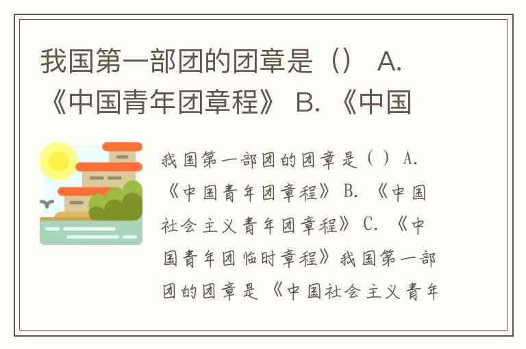 我国第一部团的团章是() A. 《中国青年团章程》 B. 《中国社会主义青年团章程》 C. 《中国青年团临时章程》