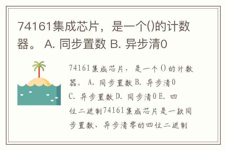 74161集成芯片,是一个()的计数器。 A. 同步置数 B. 异步清0 C. 异步置数 D. 同步清0 E. 四位二进制