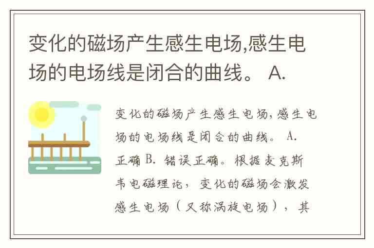 正确。根据麦克斯韦电磁理论,变化的磁场会激发感生电场(又称涡旋电场),其核心特征之一就是电场线呈闭合曲线。这一结论由麦克斯韦方程组严格描述:感生电场的旋度不为零(),表明它是非保守场;而散度为零(),说明它是无源场,不存在像电荷那样的“源头”或“尾闾”,因此场线无法中断或起止,只能形成闭合回路。