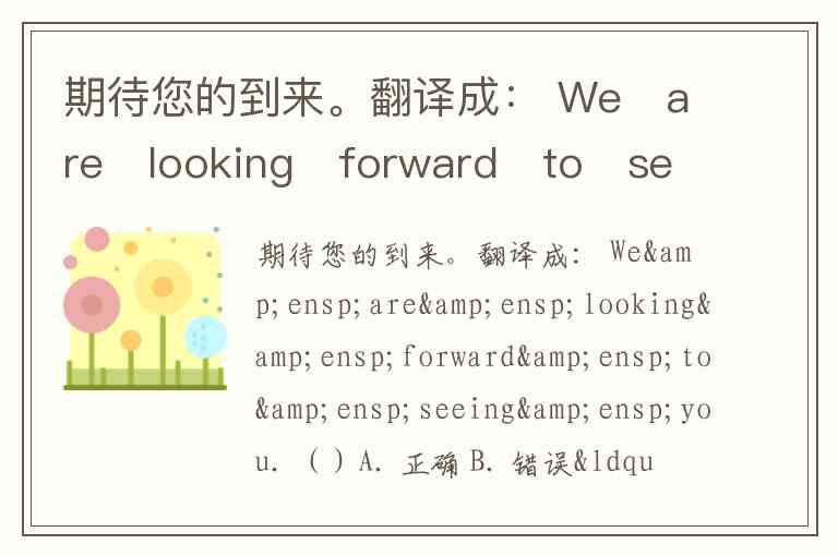 期待您的到来。翻译成: We are looking forward to seeing you. ( ) A. 正确 B. 错误