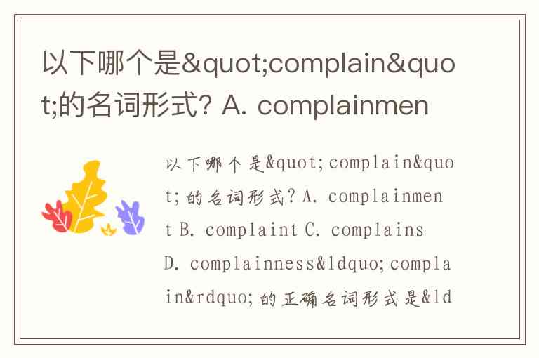以下哪个是"complain"的名词形式? A. complainment B. complaint C. complains D. complainness