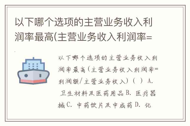 以下哪个选项的主营业务收入利润率最高(主营业务收入利润率=利润额/主营业务收入)( ) A. 卫生材料及医药用品 B. 医疗器械 C. 中药饮片及中成药 D. 化学药品制剂