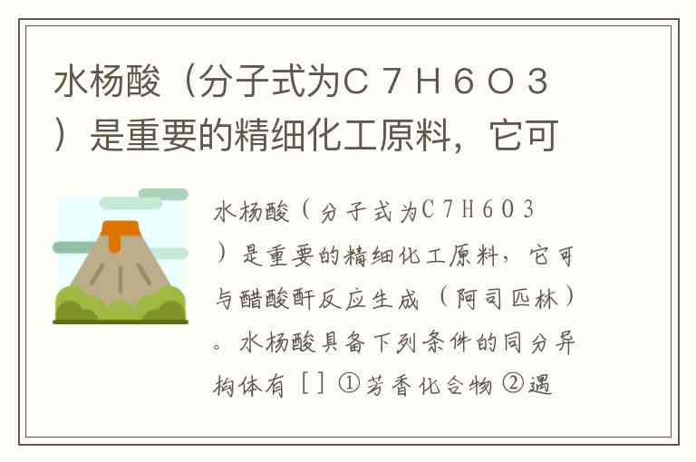 用户现在需要解决的是水杨酸的同分异构体问题,题目给出了三个条件:①芳香化合物,②遇FeCl₃溶液显紫色,③能发生银镜反应。首先,我得先明确水杨酸的分子式是C₇H₆O₃,所以同分异构体的分子式也必须是C₇H₆O₃。