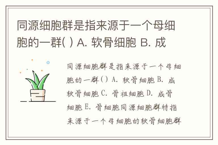 同源细胞群是指来源于一个母细胞的一群( ) A. 软骨细胞 B. 成软骨细胞 C. 骨祖细胞 D. 成骨细胞 E. 骨细胞