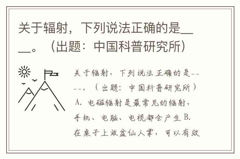 关于辐射,下列说法正确的是____。(出题:中国科普研究所) A. 电磁辐射是最常见的辐射,手机、电脑、电视都会产生 B. 在桌子上放盆仙人掌,可以有效避免电脑辐射的伤害 C. 经过电磁炉加热的食物含有电磁辐射,会对人体造成损害