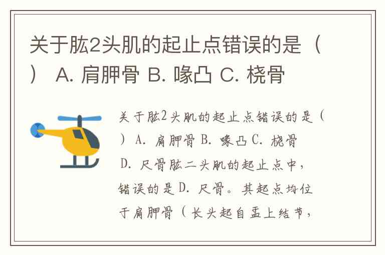 关于肱2头肌的起止点错误的是() A. 肩胛骨 B. 喙凸 C. 桡骨 D. 尺骨