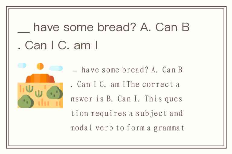 The correct answer is B. Can I. This question requires a subject and modal verb to form a grammatically complete request. "Can I have some bread?" follows the standard structure for polite requests in English: modal verb (Can) + subject (I) + base verb (have).