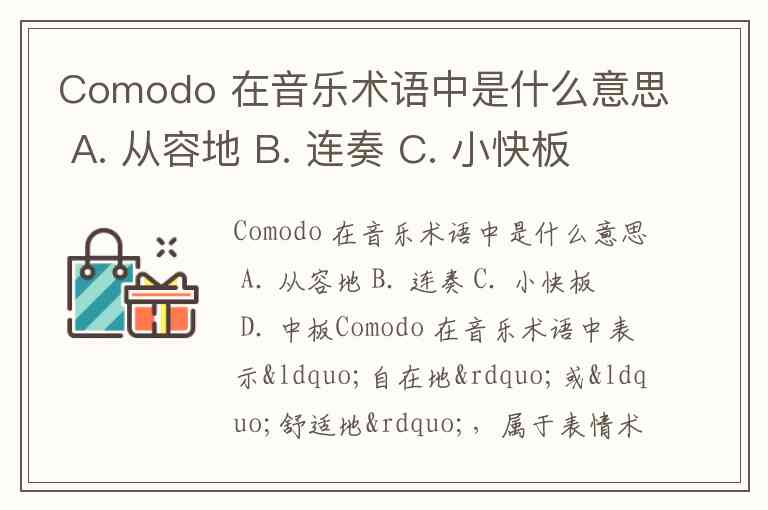 Comodo 在音乐术语中是什么意思 A. 从容地 B. 连奏 C. 小快板 D. 中板