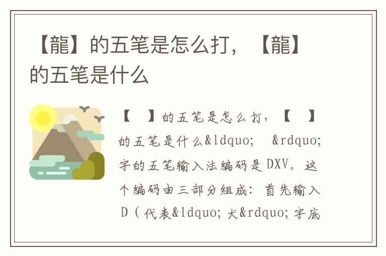 【龍】的五笔是怎么打,【龍】的五笔是什么