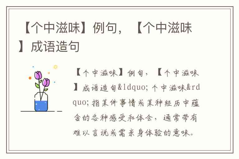 这个成语的妙处在于“只可意会不可言传”的留白感——它承认了某些体验的复杂性,同时邀请听者或读者去想象那份独特感受。你是否也曾有过某种“个中滋味”难以向外人道明的时刻?