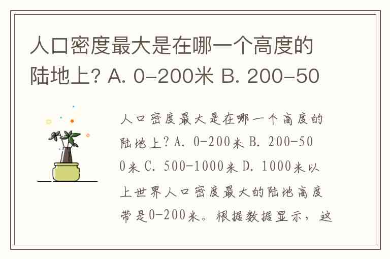 人口密度最大是在哪一个高度的陆地上? A. 0-200米 B. 200-500米 C. 500-1000米 D. 1000米以上