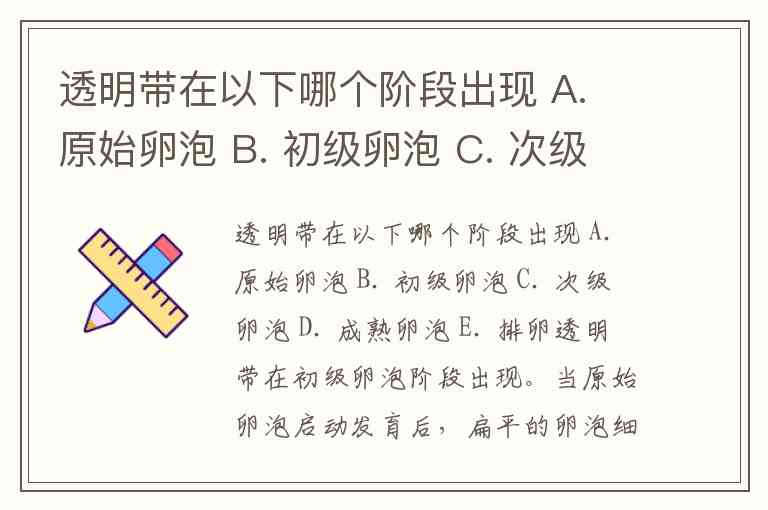 透明带在以下哪个阶段出现 A. 原始卵泡 B. 初级卵泡 C. 次级卵泡 D. 成熟卵泡 E. 排卵