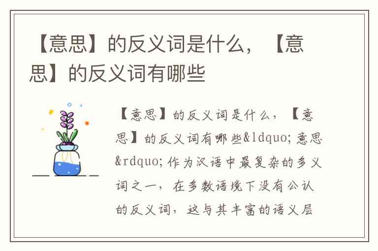 “意思”作为汉语中最复杂的多义词之一,在多数语境下没有公认的反义词,这与其丰富的语义层次密切相关。根据权威定义,反义词需满足“意义相反”的核心条件,而“意思”的多义性使这一匹配变得困难:当表示“语言文字的含义”(如“这句话什么意思”)时,它指向抽象的语义本身,不存在对立概念;当表示“意图”(如“他这番话是何意思”)时,对应的否定状态是“无意图”,而非严格反义;当表示“趣味”(如“这部电影真没意思”)时,其反面更接近“乏味”等描述状态的词,而非词性对应的反义词。
