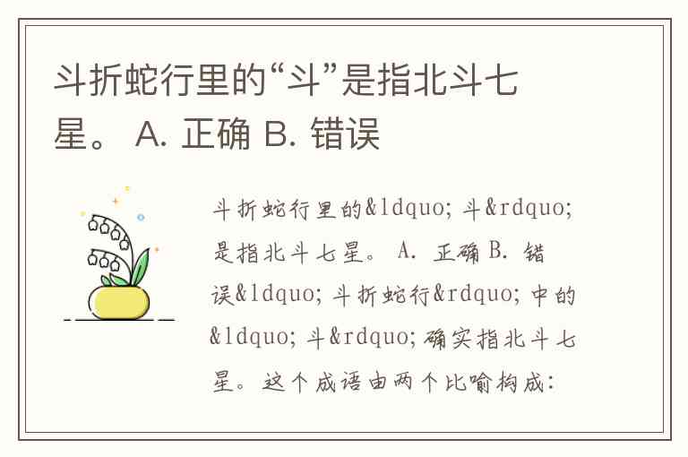 斗折蛇行里的“斗”是指北斗七星。 A. 正确 B. 错误